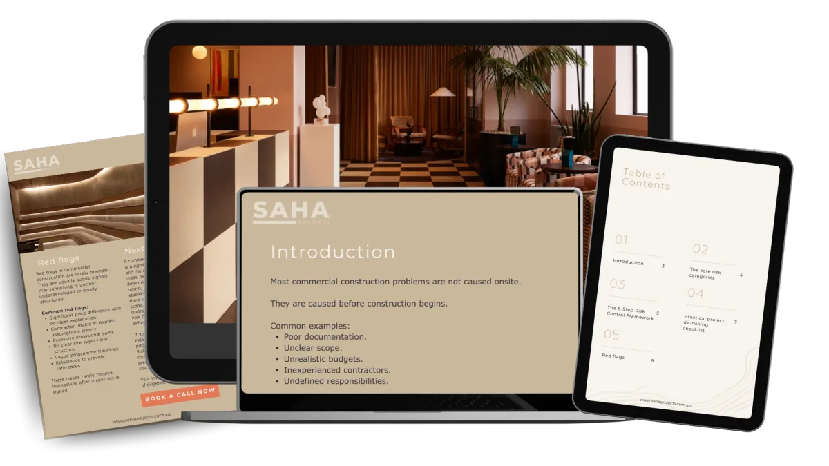 Prepared by Saha Projects. A Sydney-based commercial construction firm specialising in fit-outs, refurbishments and complex project delivery.